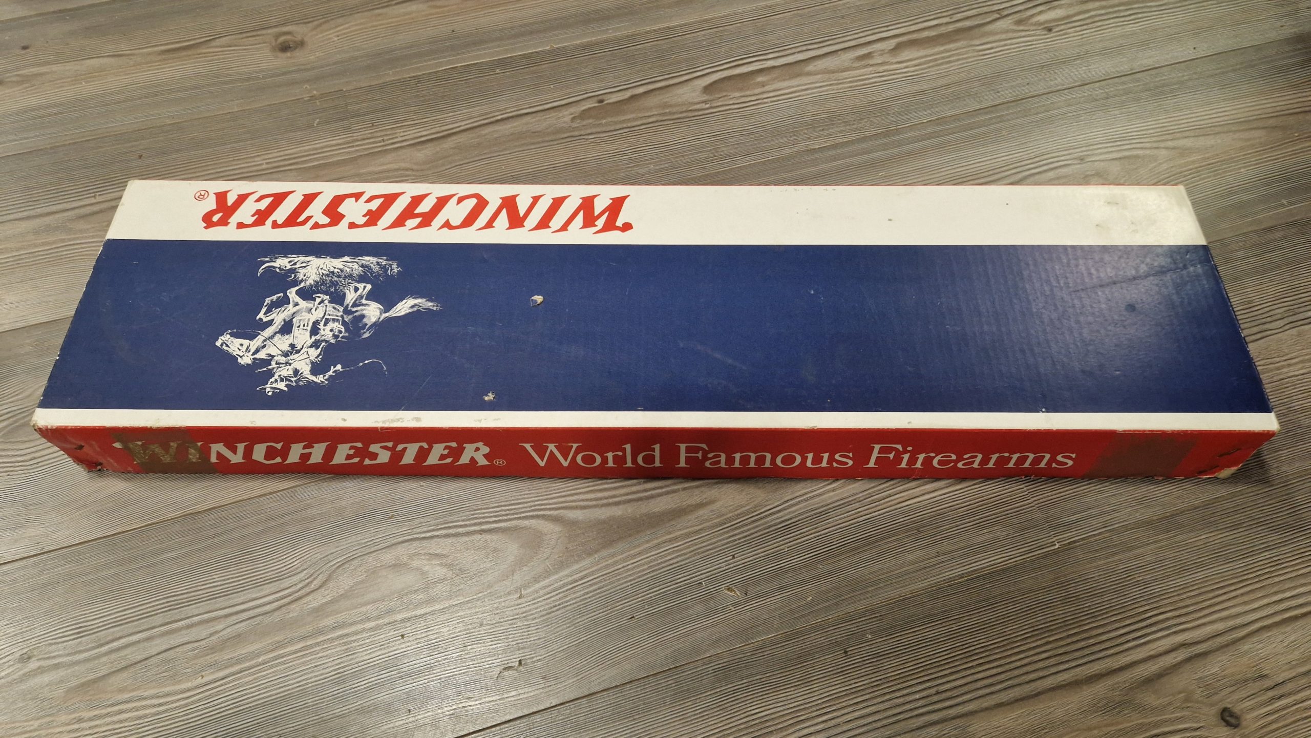 Boîte originale WINCHESTER – WORLD FAMOUSE FIREARMS, avec emballages carton d’origine à l’intérieur.