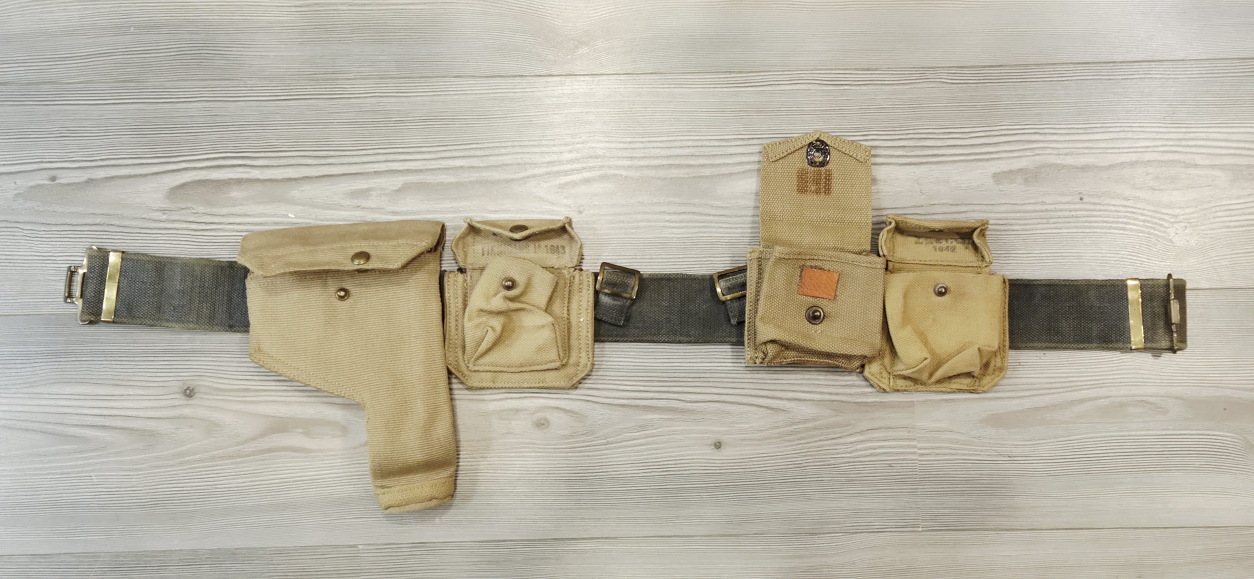 Ceinturon anglais avec montage comprenant un étui pour revolver WEBLEY et trois pochette à munitions.