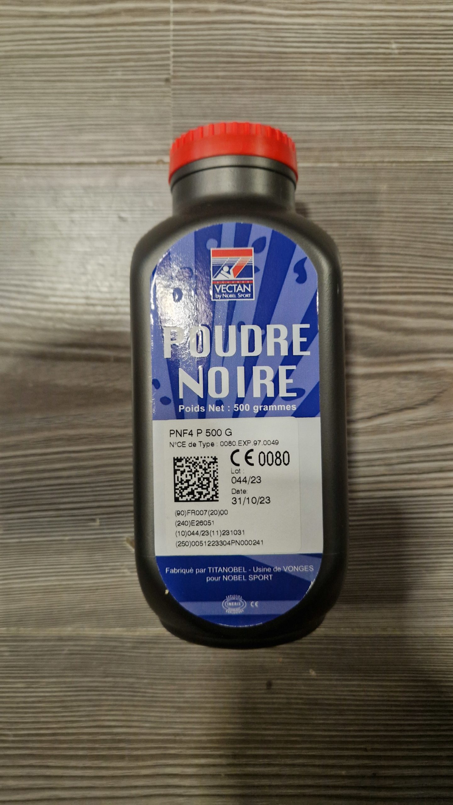Poudre noire pour armes ou répliques anciennes. Poudre Française, bidon de 500 grs.